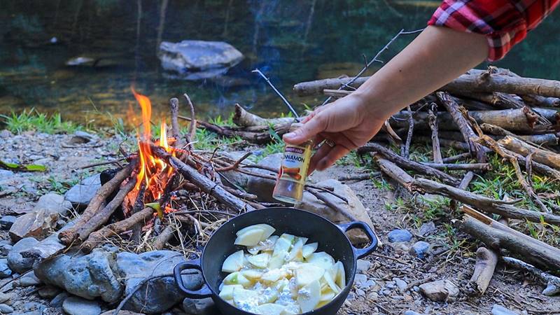 This easy apple crumble can be prepared while you are sitting at a campfire. There is nothing better than a sweet dessert after diner.