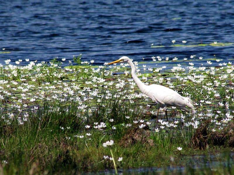 In the evening we encountered wild horses grazing near the water. It was interesting as they were ‘ridden’ by birds that cleaned their backs of insects.